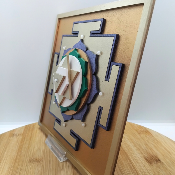 Ručno izrađena dekoracija u 3D obliku, predstavlja Bhuvaneshwari Yantru.