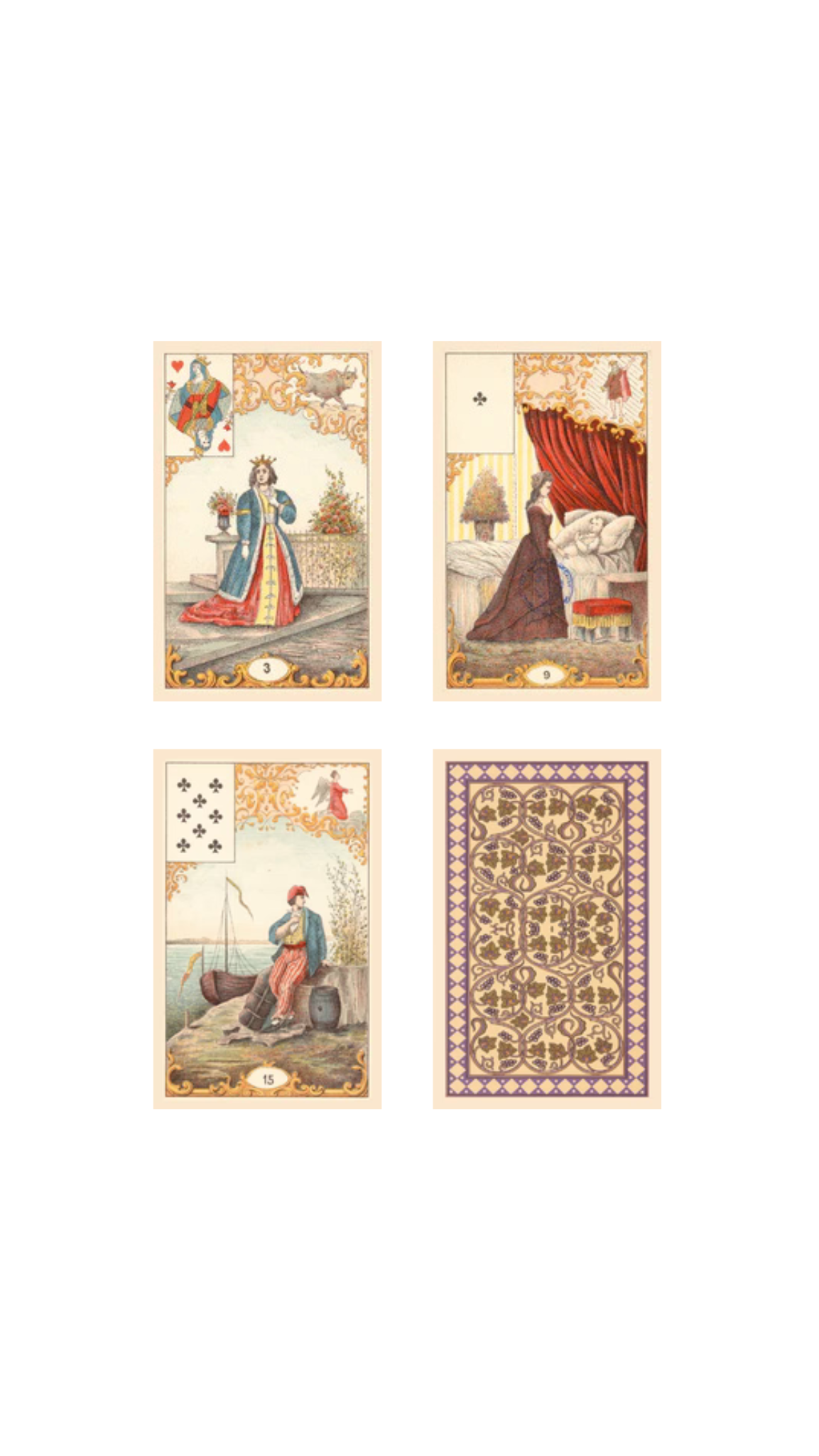 Špil je sličan kartama u tipu Lenormand špilova.