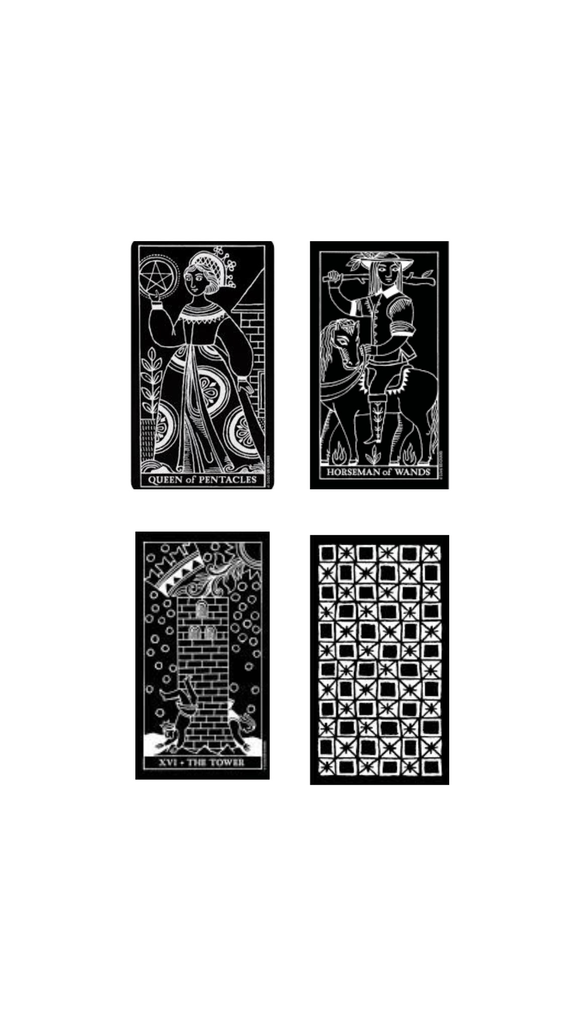 Tamne pozadine i bijeli outline daju poseban šarm. Inversion Tarot idealan je za početnike i napredne čitače.