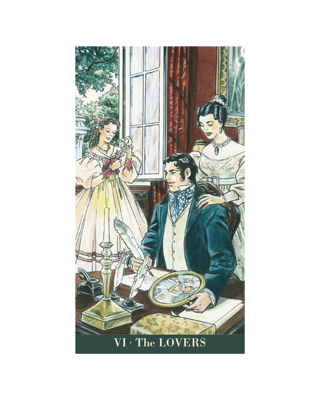 Svaka od ovih sugestivnih karata inspirirana je likovima ili scenama iz djela Jane Austen, prenoseći atmosferu njezinih priča kroz bogatu simboliku i pažljivo osmišljene vizualne elemente. Unatoč toj snažnoj književnoj inspiraciji, za korištenje ovog špila nije potrebno prethodno poznavanje opusa Jane Austen niti iskustvo s tarotom. Karte su osmišljene tako da budu intuitivne i pristupačne, omogućujući svakome da kroz njih istraži poruke ravnoteže, osobnog razvoja i međuljudskih odnosa, dok istovremeno uživa u elegantnom spoju književne tradicije i tarot simbolike.